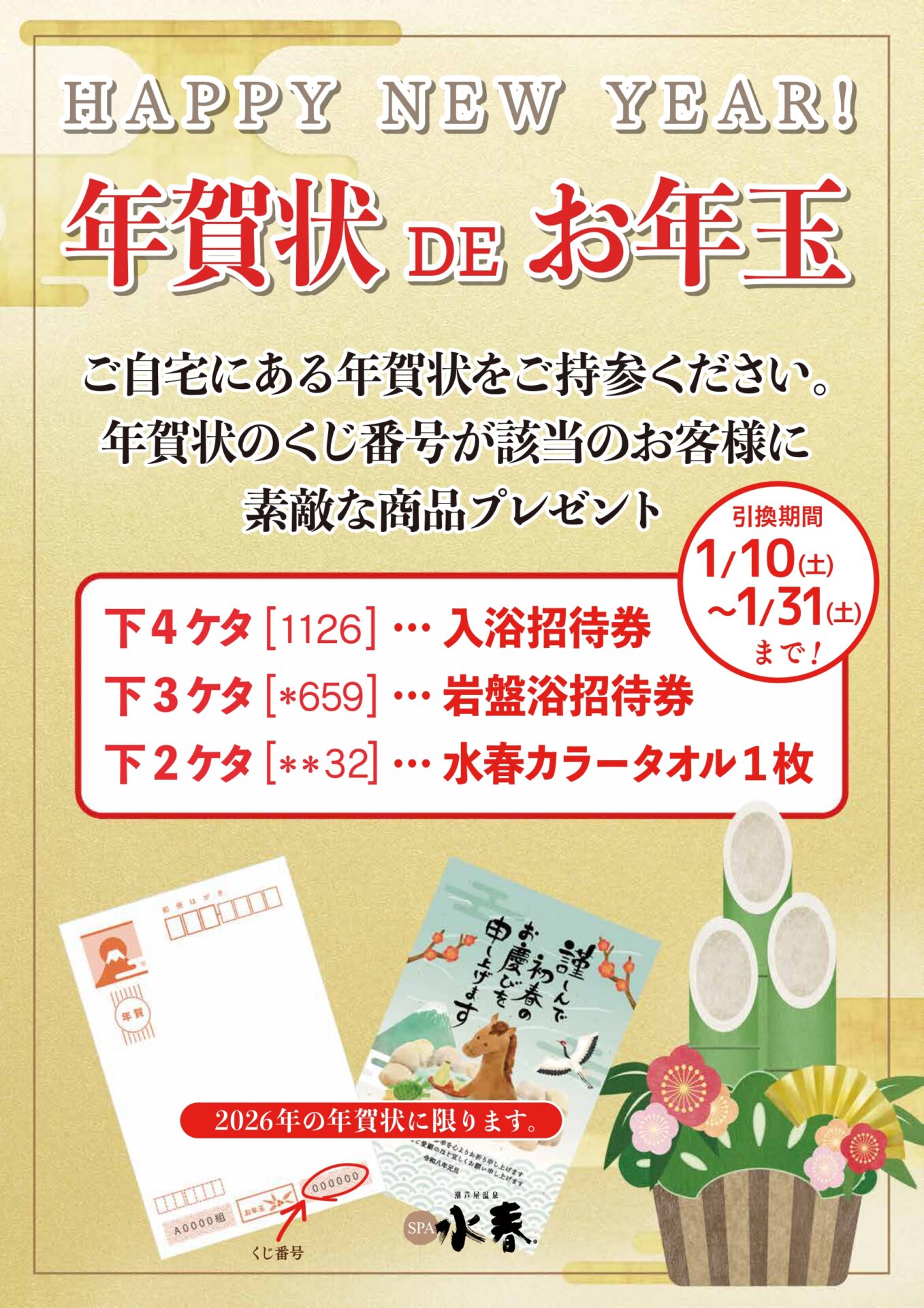 ご自宅にある年賀状のくじ番号が該当のお客様に素敵な商品をプレゼント♪