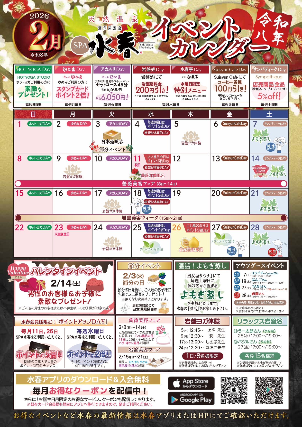 2/3(木) 節分イベント 男女炭酸泉 日本酒風呂