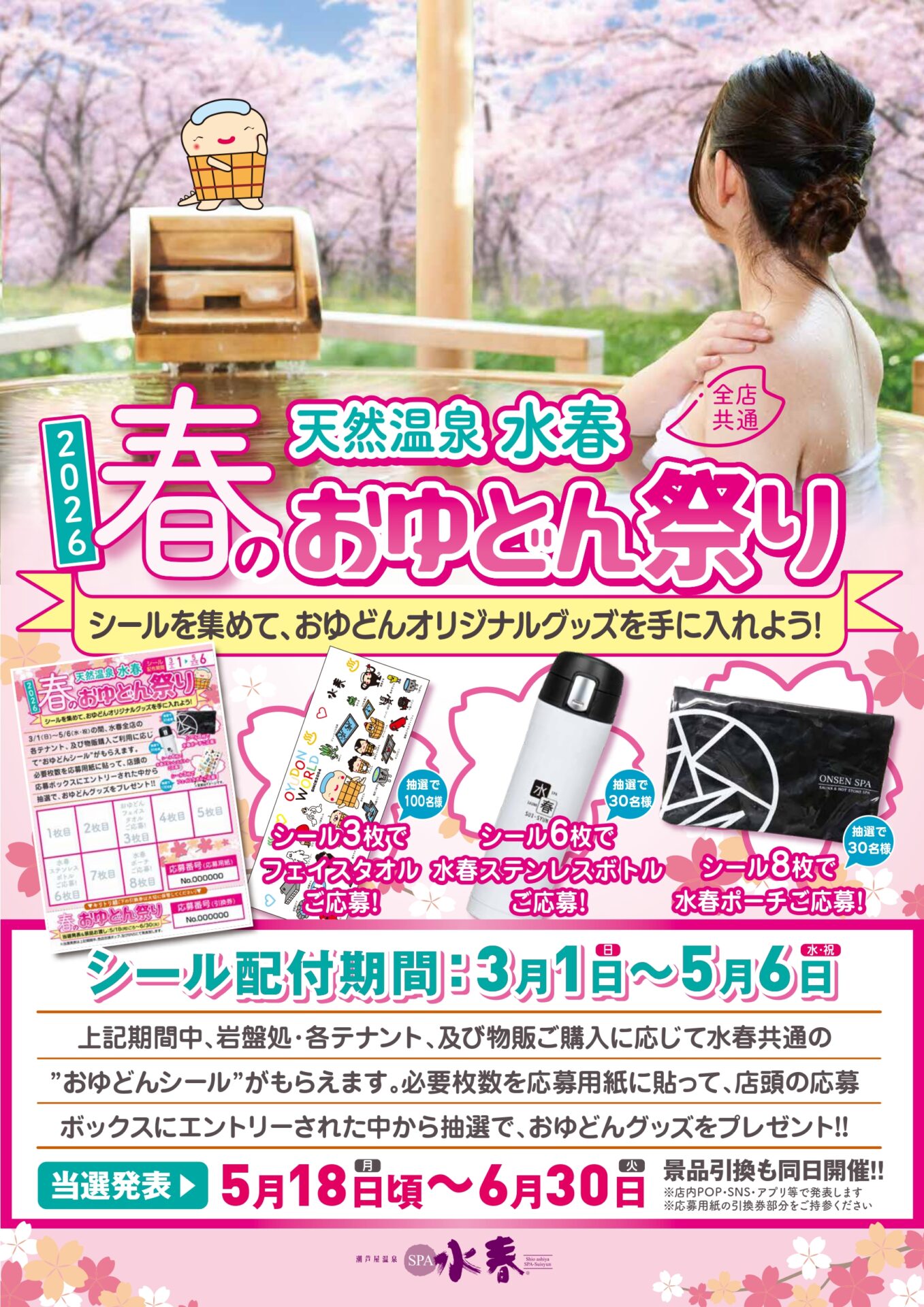 この春は 水春をご利用いただき、おゆどんグッズを手に入れましょう!