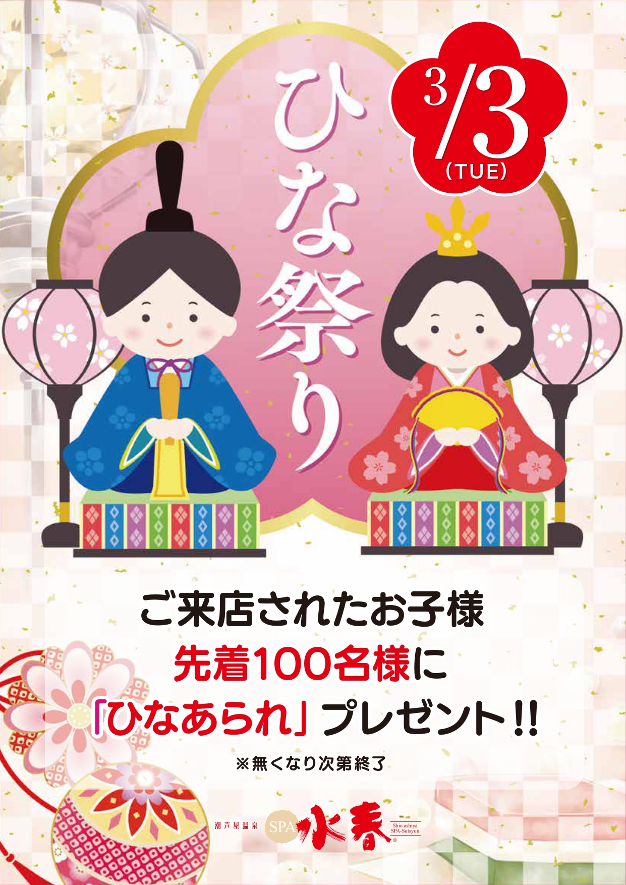 当日、ご来店されたお子様にひなあられをプレゼント!(※数に限りがございます)