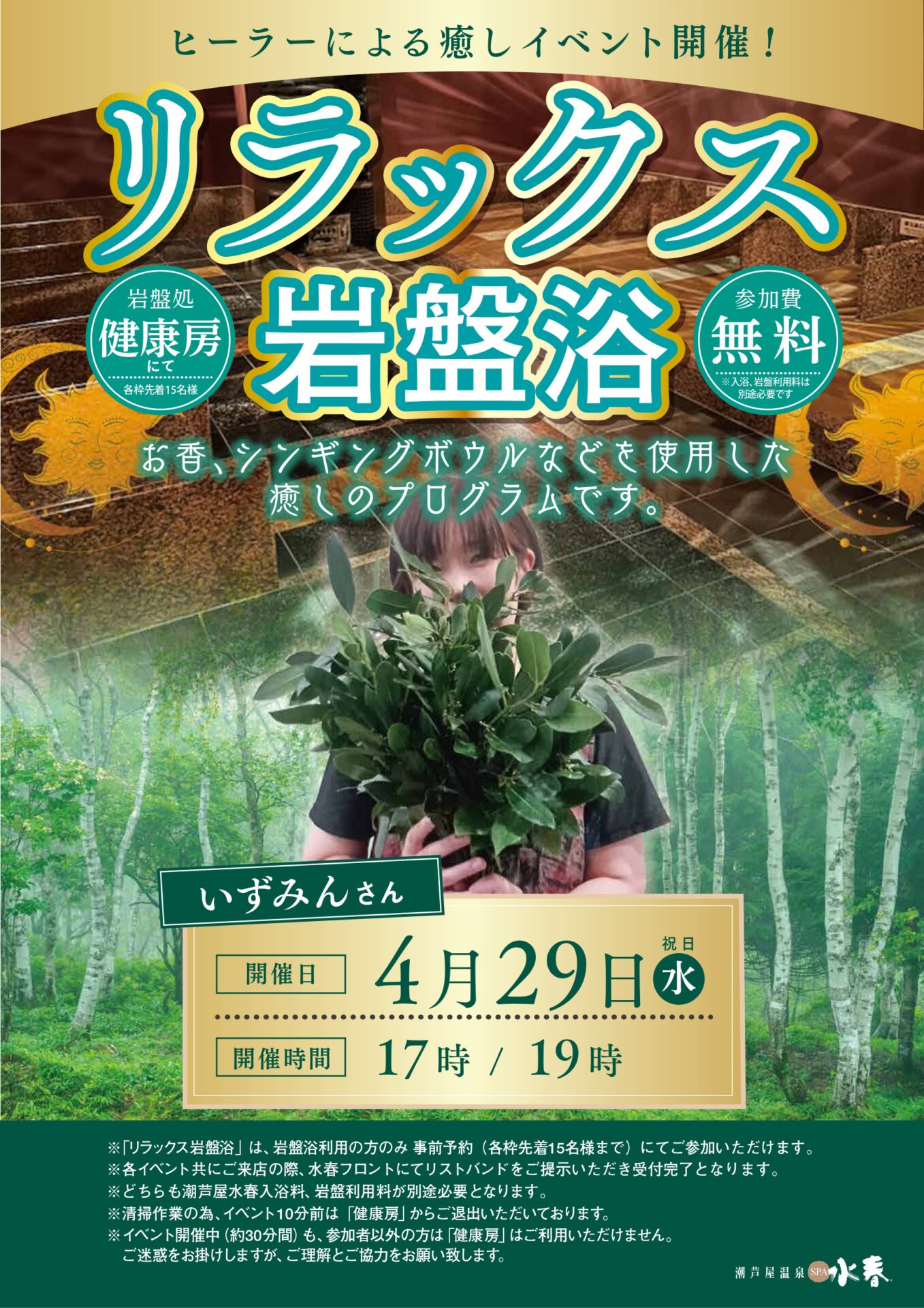 4/29(水/祝) 岩盤処健康房にてリラックス岩盤浴を開催致します♪