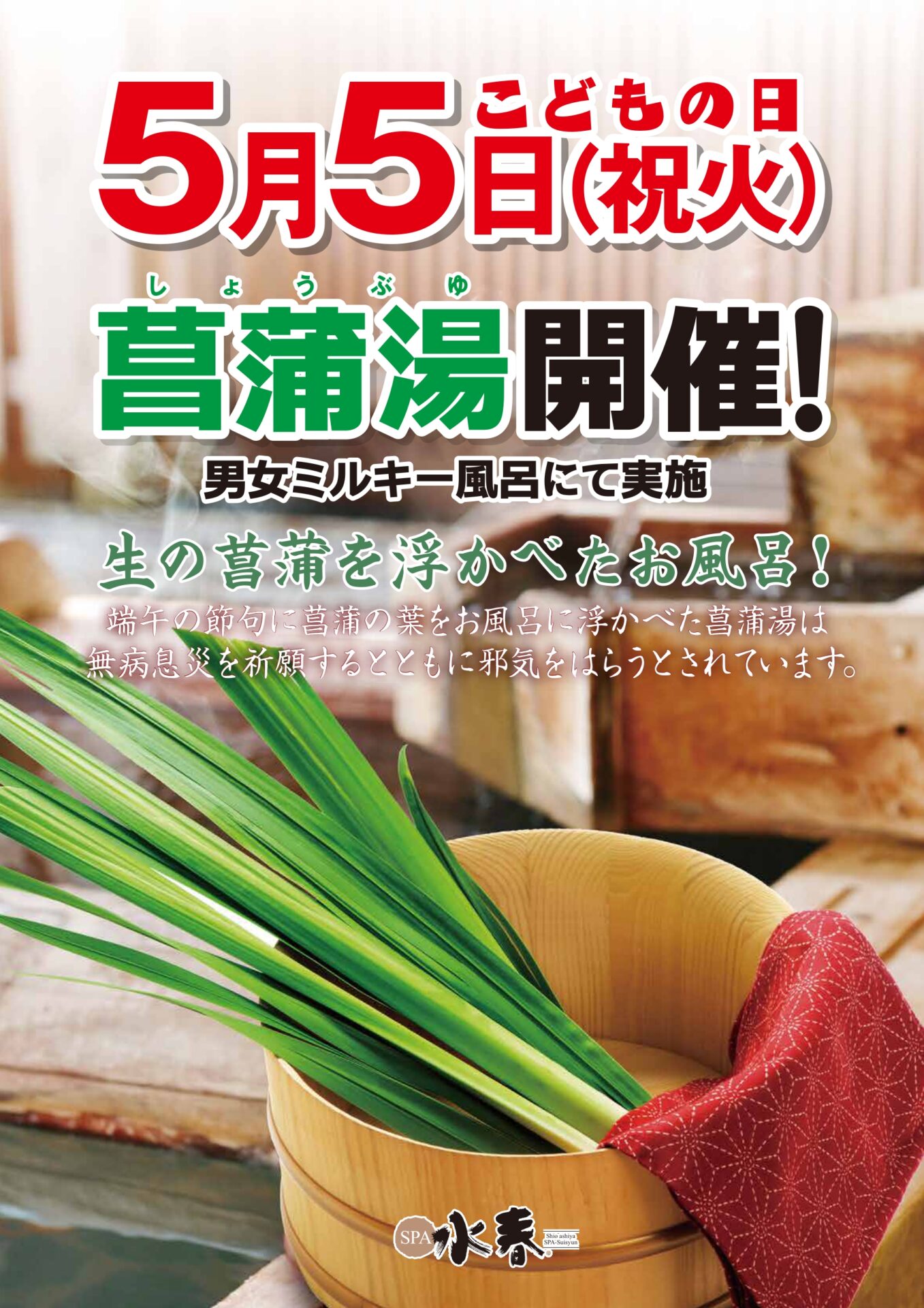 5/5(火/祝) こどもの日に男女ミルキー風呂にて菖蒲湯を開催致します♪