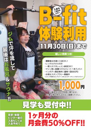 また、体験・ビジター利用後の入会もしくは入会予約で1ヶ月分の月会費が50%OFFに