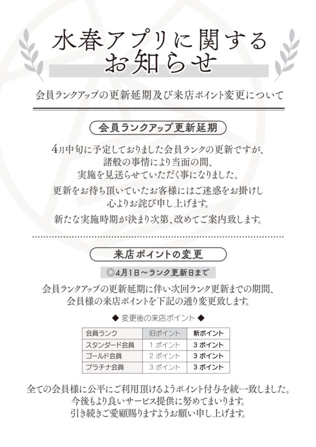 4月中旬に予定しておりました会員ランクの更新ですが、