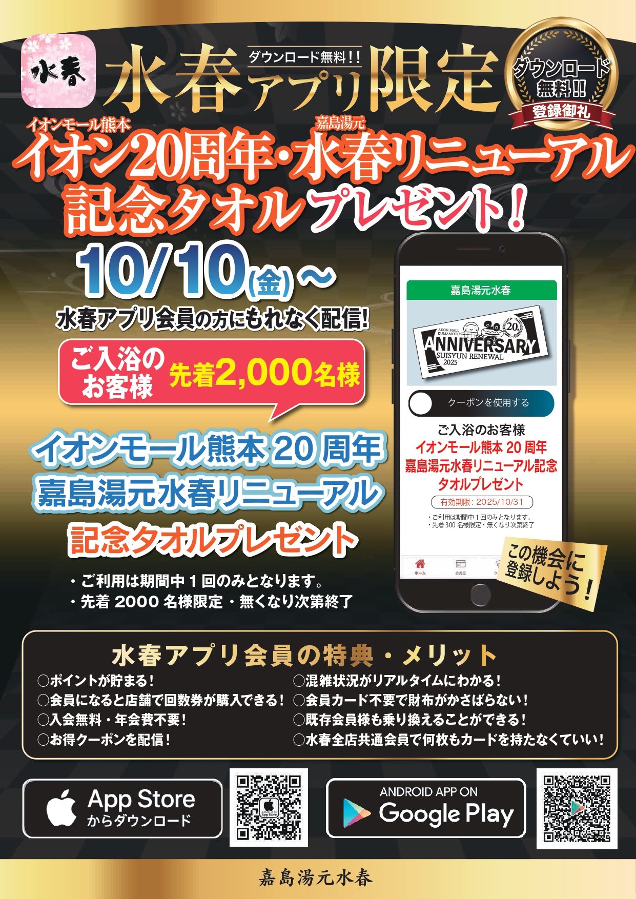 水春アプリ会員様限定で先着2000名様に