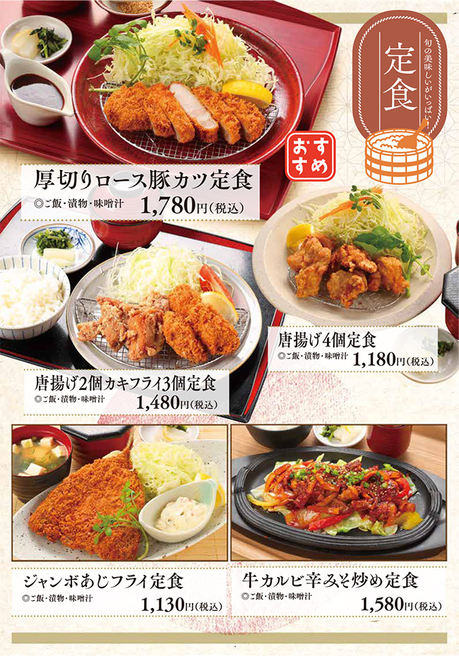 | 厚切りロース豚かつとじ膳 | 1,780円(税込) |