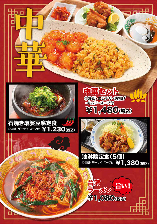 | 石焼きチーズきのこスンドゥブ定食 | 1,380円(税込) |