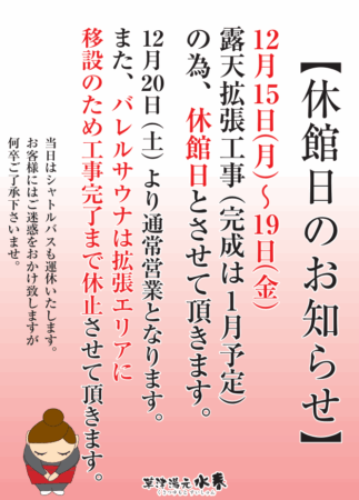 【休館日のお知らせ】