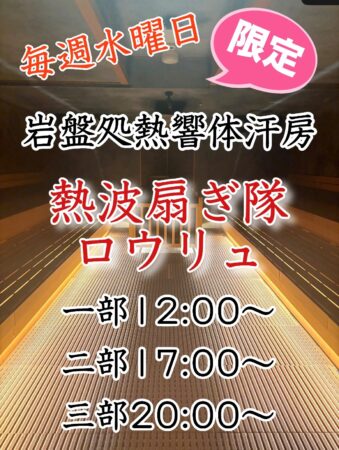 毎週水曜日☆熱響体汗房☆12時・17時・20時