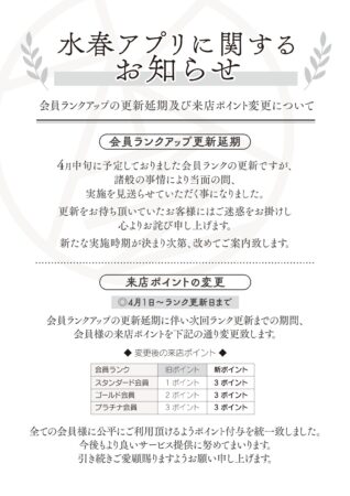 4月中旬実施を予定しておりました会員ランク更新につきまして