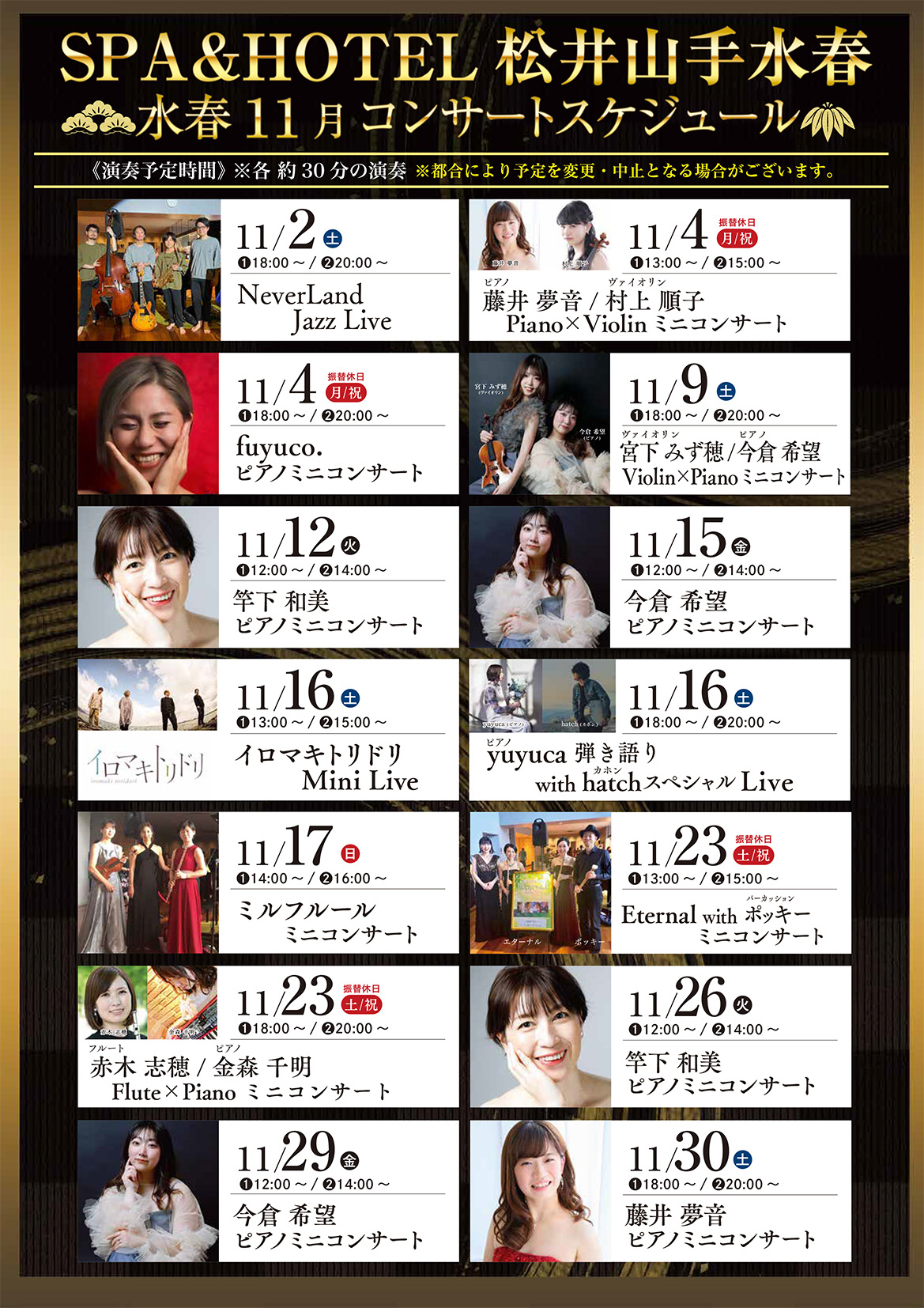各演奏約30分🎹