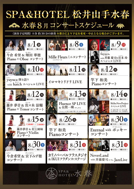 8月のコンサートスケジュール