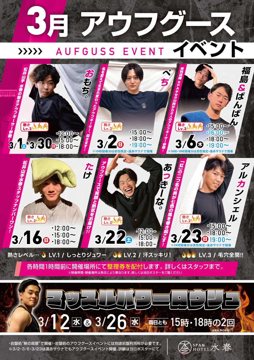 岩盤処の「熱の部屋」にて人気熱波師さんによる
