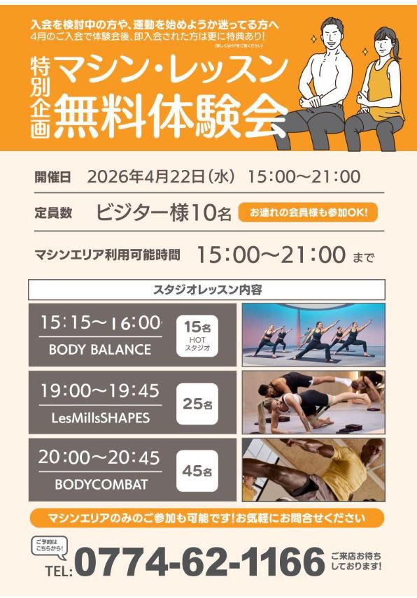 4/22(水)マシン・レッスン無料体験会に参加し、