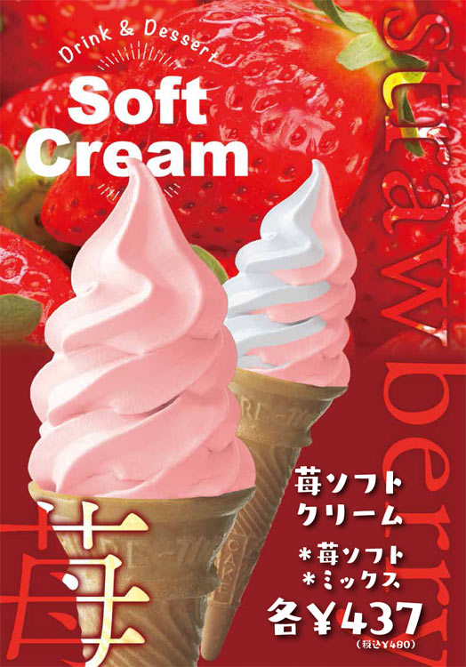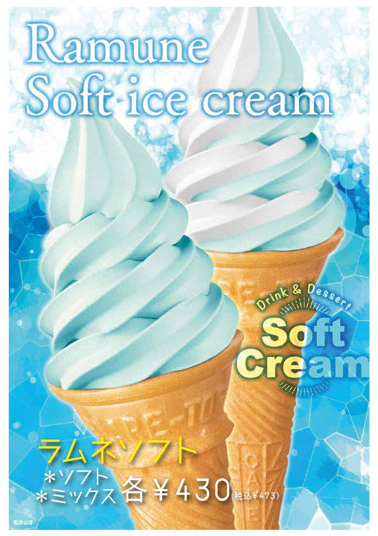 1F岩盤処前にてソフトクリーム・ドリンク等を販売しております。