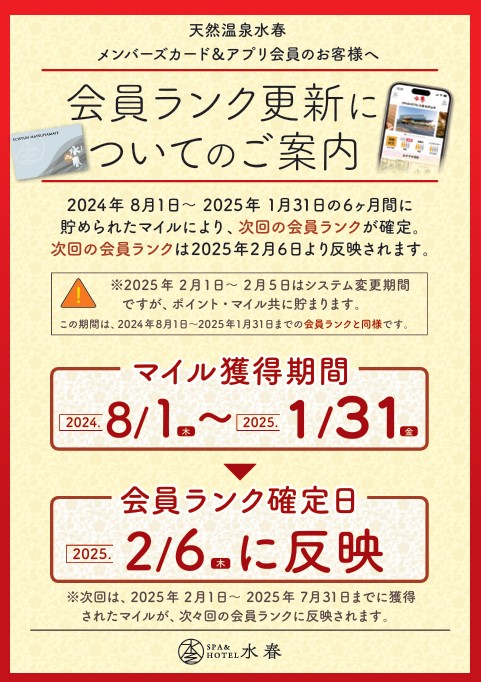 2024年8月1日~2025年1月31日の6ヶ月間に貯められたマイルにより、次回の会員ランクが確定します。