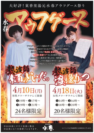 4/10(月) 熱波師 素面のいいだ。さん【男性サウナ】