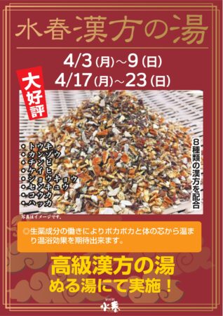 高級漢方薬草風呂 4/3(月)~9(日)・4/17(月)~23(日)