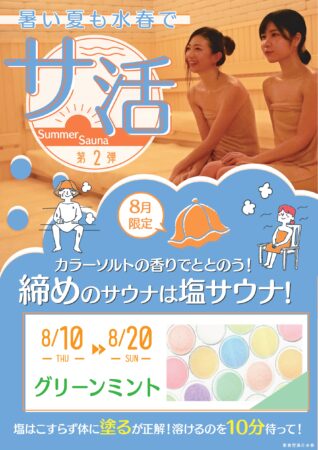 8/10(木)~20(日)は塩サウナに、カラーソルト「グリーンミント」を設置いたします。
