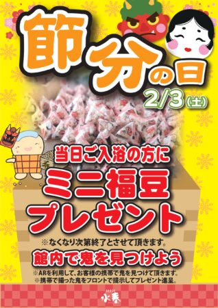 当日ご入浴の方、先着1,000名様にミニ福豆をプレゼントいたします!