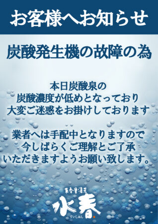 炭酸泉の不具合のお知らせ