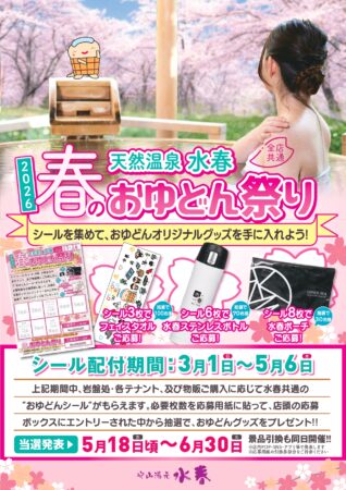期間中、岩盤処・各テナント、及び物販ご購入に応じて”おゆどんシール”がもらえます。