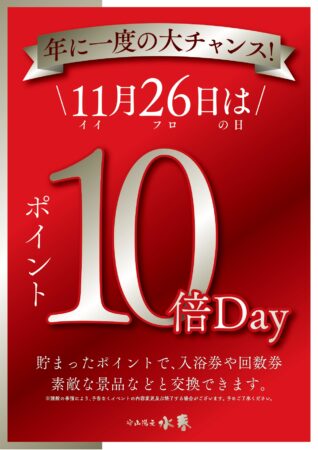 11月26日【いい風呂の日】は年に一度のポイント10倍DAYです!!
