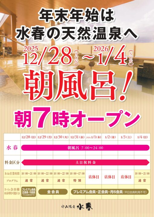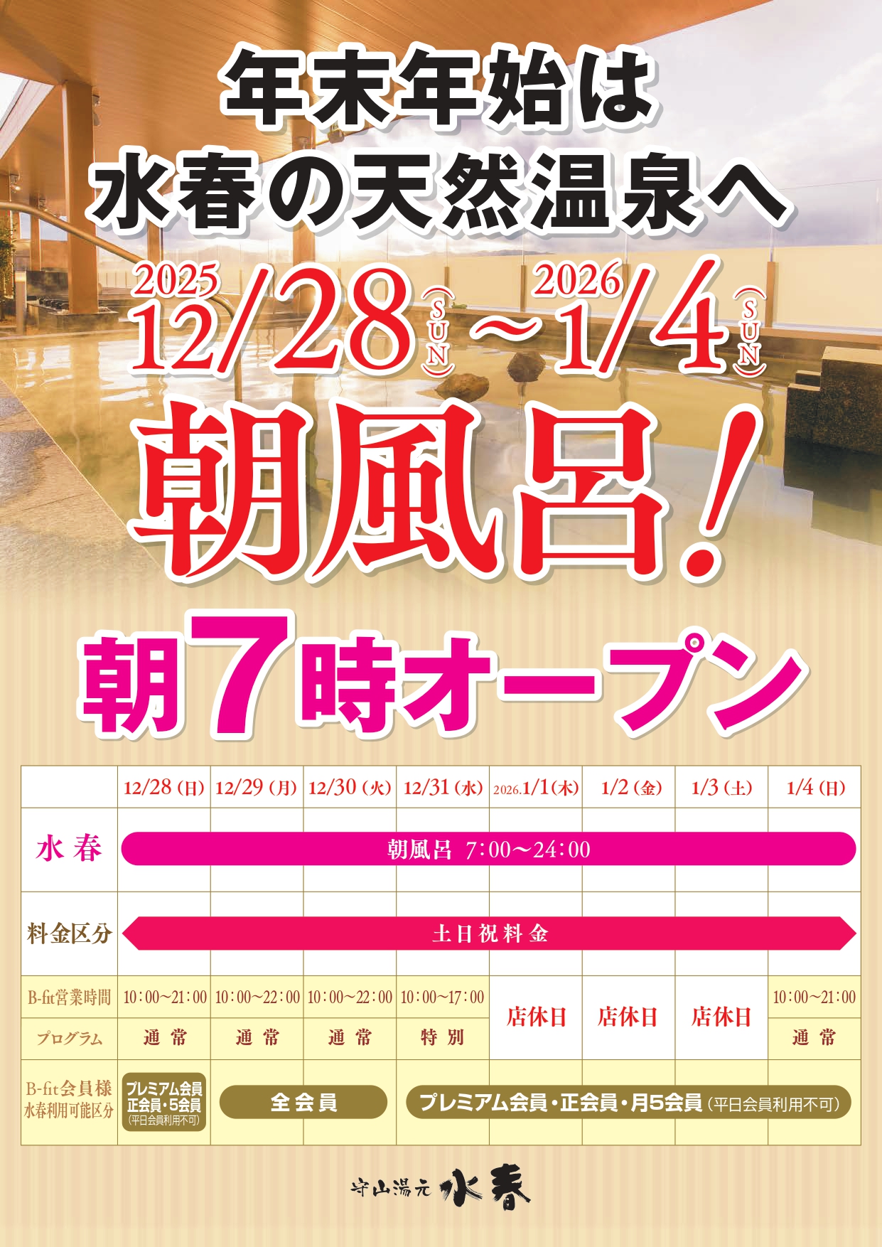 年末年始は朝風呂開催です。冬場の朝風呂はサイコーですよ(^^♪
