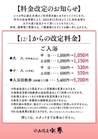 いつも守山湯元水春をご利用いただき誠にありがとうございます。