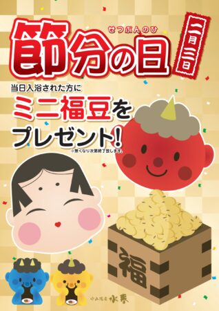 当日ご入浴のお客様に先着でミニ福豆をプレゼントいたします!!