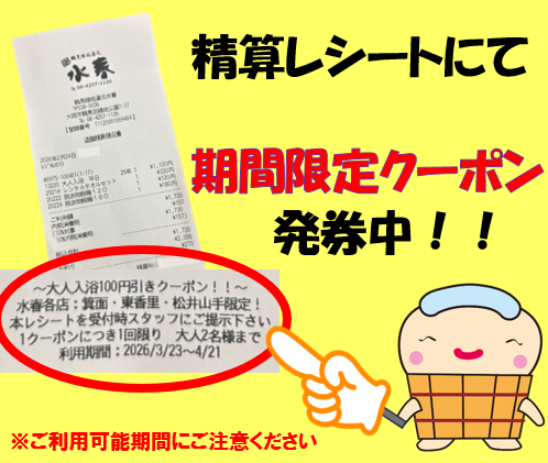 精算レシートにて期間限定クーポン発券中!!