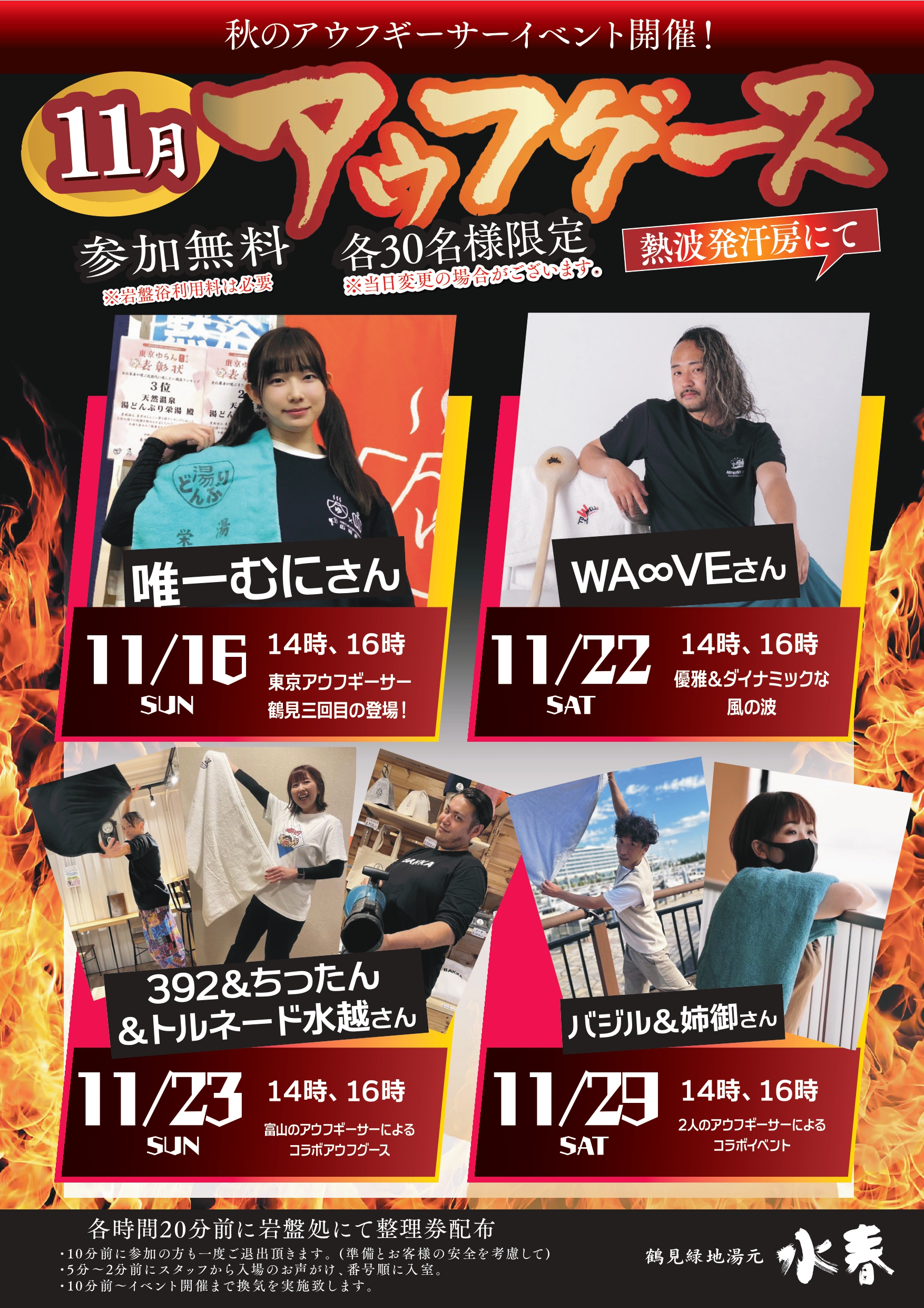 岩盤処・熱波発汗房にて開催!