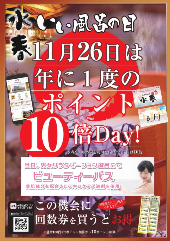11/26(水)はいい風呂の日!一年に一度のポイント10倍!!!